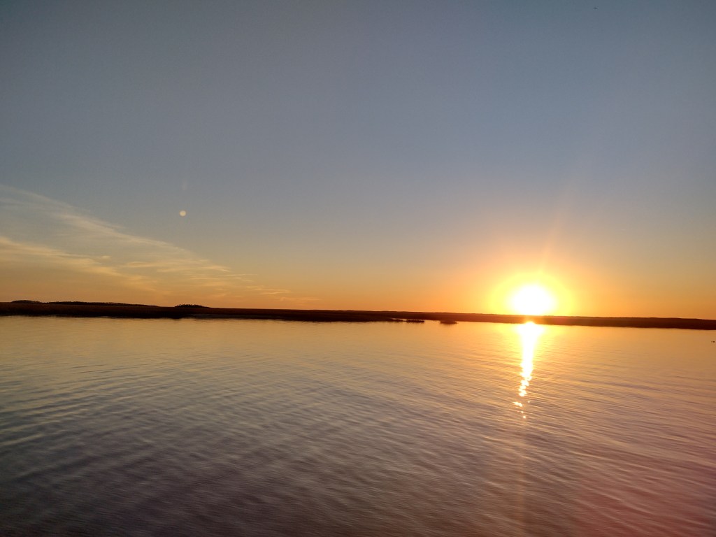 We anchored in a wide open space just off the ICW. There are few trees here so we have an incredible view of the sky. We anchored just as the sun was setting and the moon was rising.