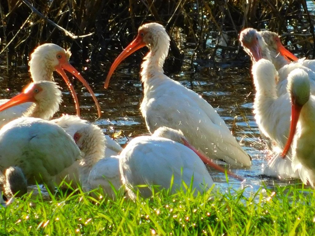 The white ibis have been clustering around the shallow edges of Cypress Wetlands. They splash, eat, and preen. They’re entertaining to watch.