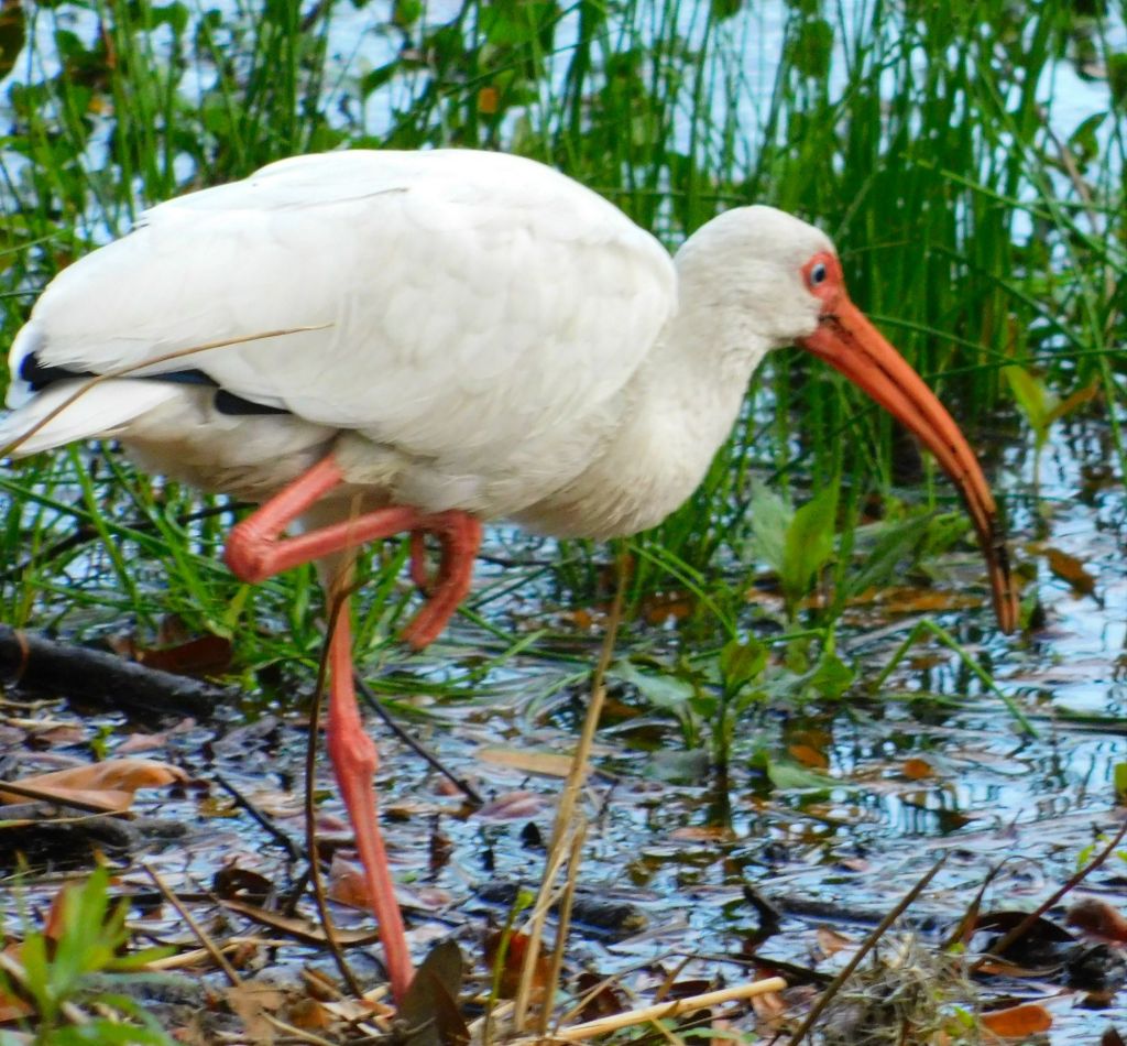Ibis gather daily to dig in the mud. They’re not nesting yet – they’re just socializing in flocks of 20 or more. As the mud warms up, more little critters surface for them to eat.