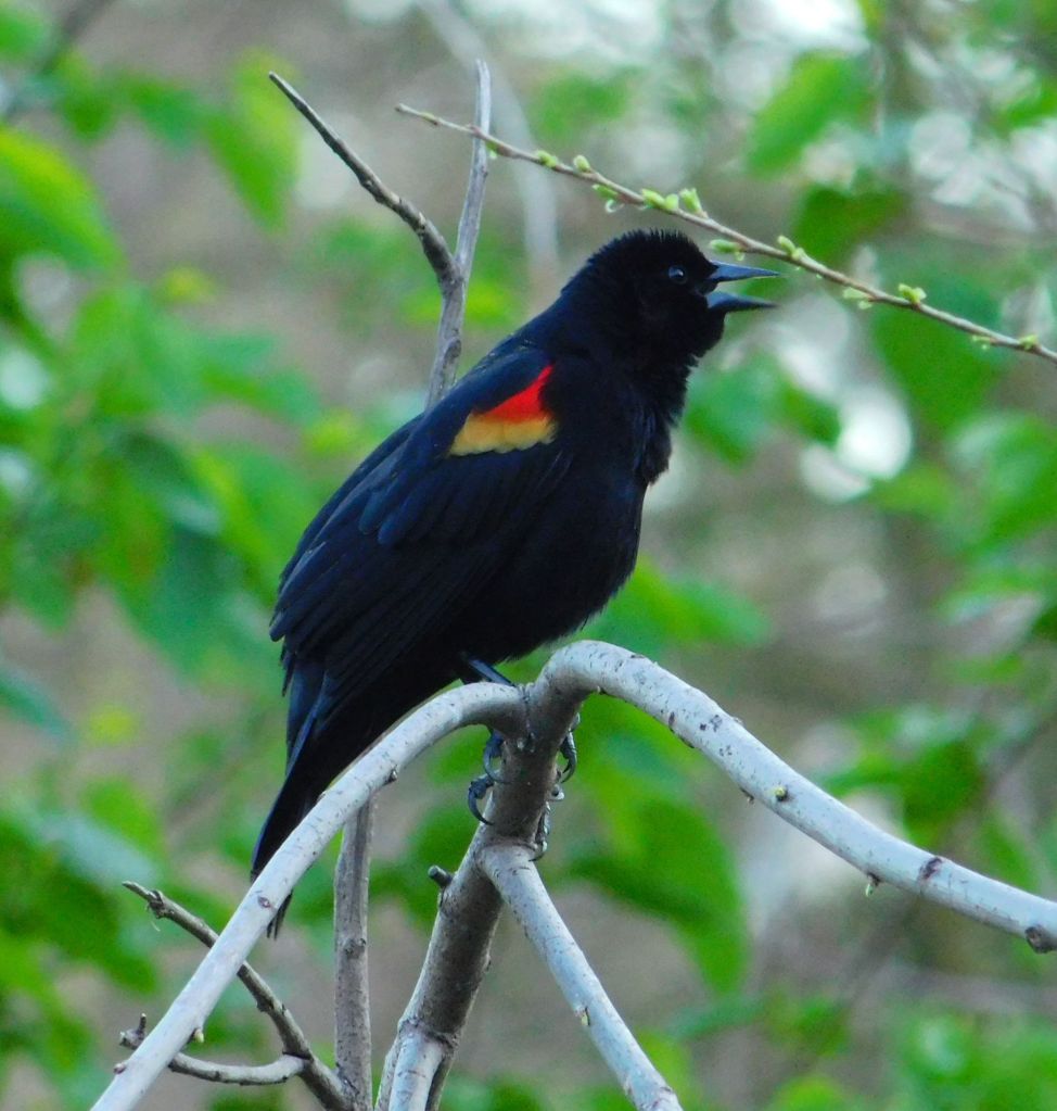 Red-winged blackbirds are back and singing their spring songs.