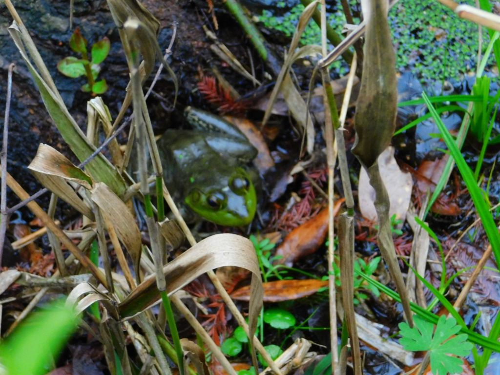 Bullfrogs are adding their songs, too. They’re not always easy to spot, especially with all of the duckweed that’s the same color as they are.