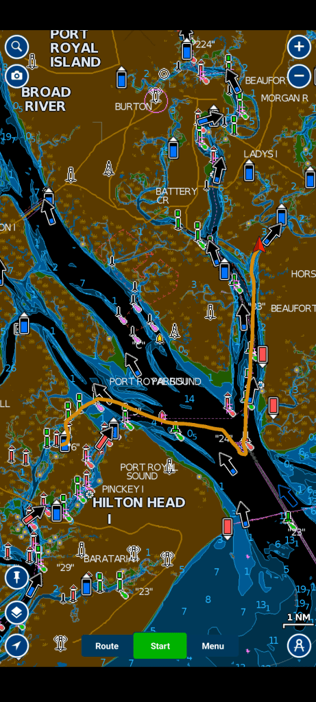 We left the marina a few minutes after 8 AM. I had an awful experience on the Port Royal Sound and even though we’ve crossed it several times since then, I’m always thinking about how rough it can get.