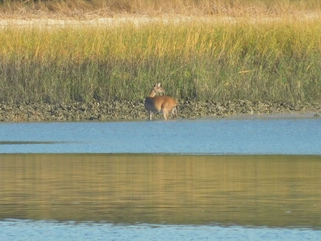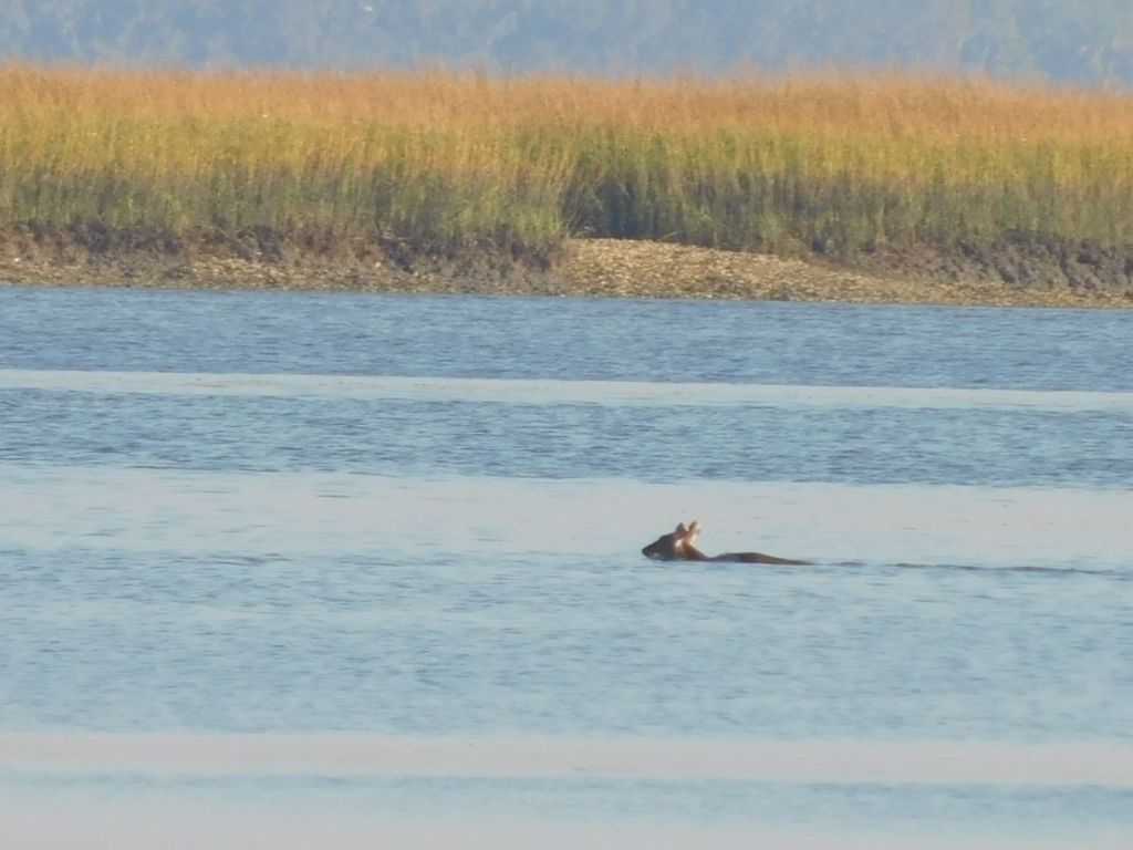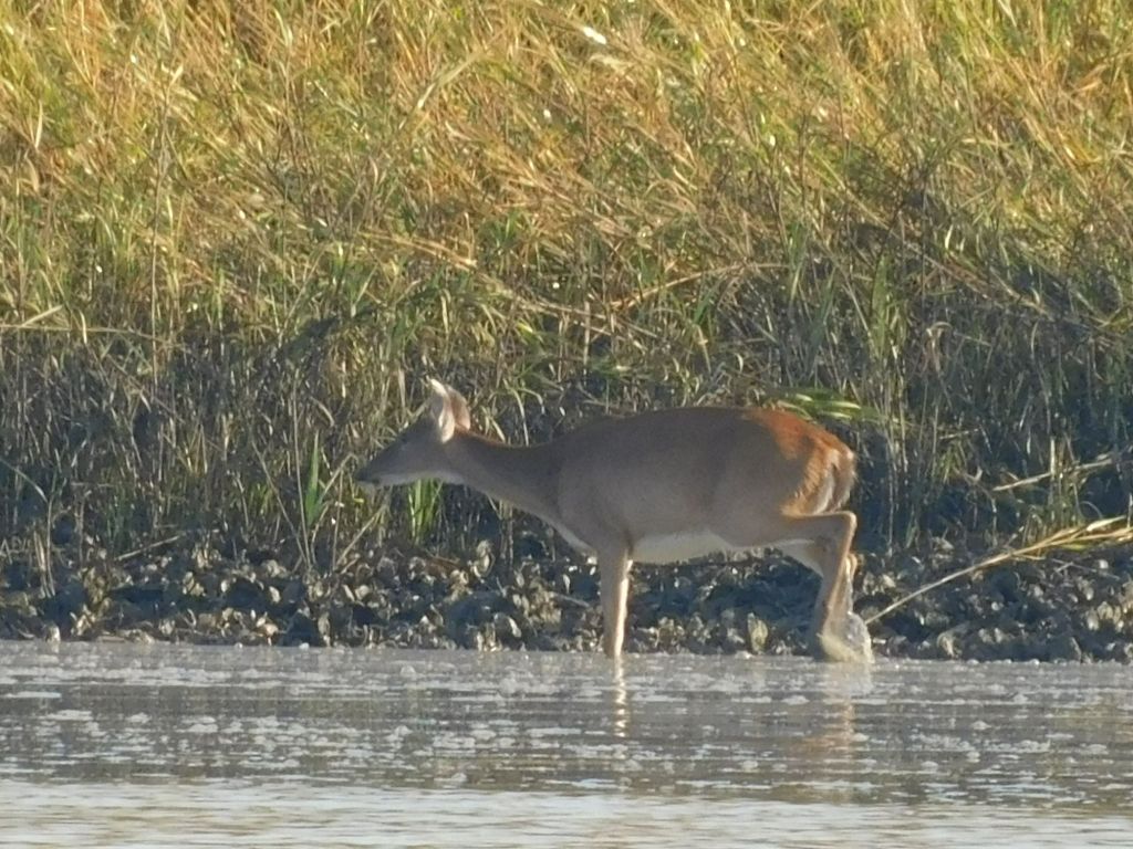 After breakfast we saw something completely unexpected. We watched a deer walk along the shore and then swim across the creek.