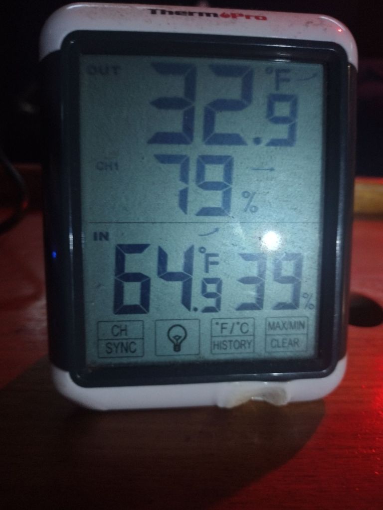 We have multiple heat sources onboard (electric and propane). Because we like to sleep in a cooler room, we turn them down at night. Once we were up and working, we turn up the electric and propane to a cozy temperature.