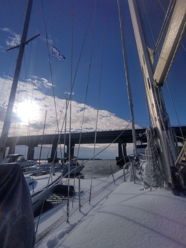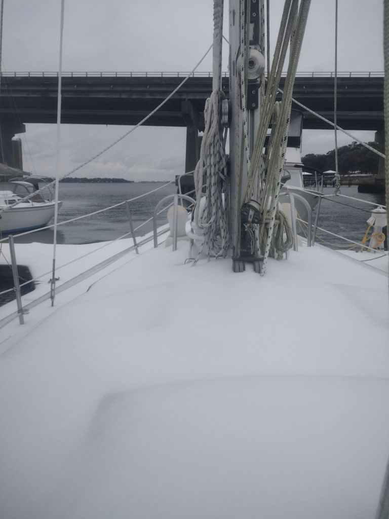 That was crazy weather! I’ve never seen a sailboat in the snow. So glad to hear all is OK. You’ve chalked up another experience to reflect on down the road. Rock on 🤘