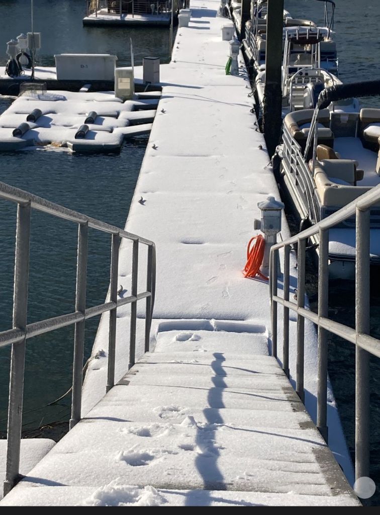 John did some informal snow clearance on the docks – he kicked a lot off so it could dry. The marina doesn’t have snow shovels or blowers and hopefully all the dockhands stayed off the roads today.
