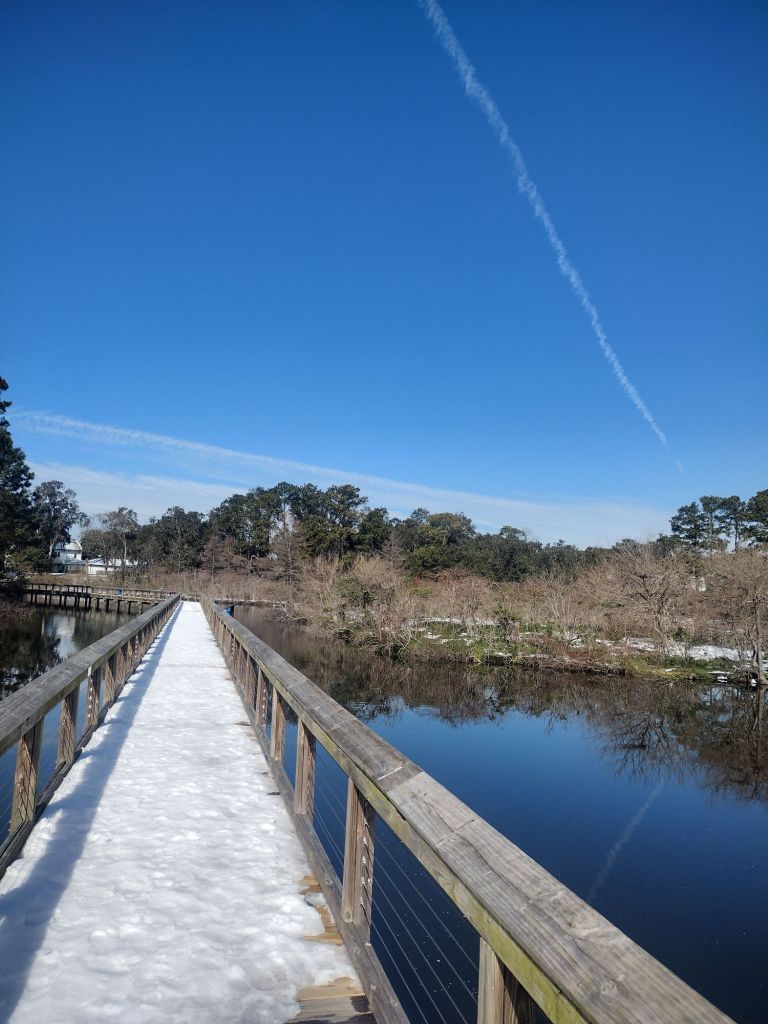 We went out for bagels this morning and took a ride to Cypress Wetlands for the rare opportunity to see how it looks decorated with snow.
