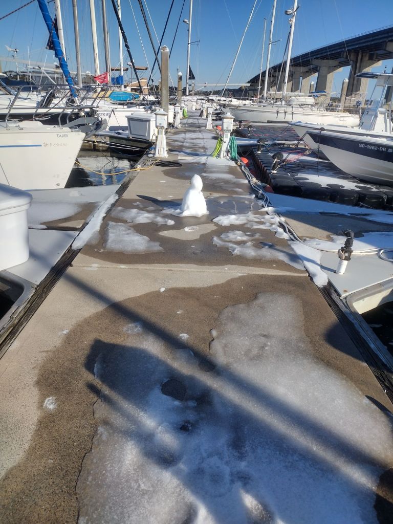 The snow is mostly gone from the docks although the hard packed stuff in shady places is still slowly melting.