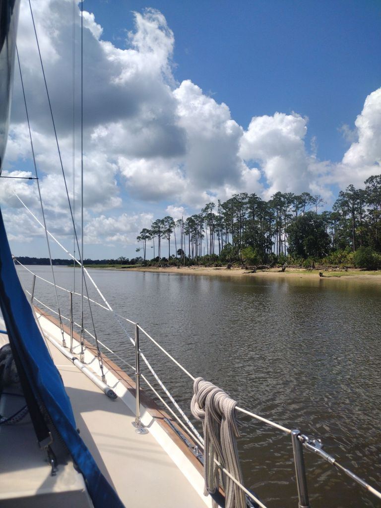 This was another long day of travelling through the twisty, windy Georgia chunk of the ICW. We also had to plan for tide height in Hell Gate which is about 3 hours from here.