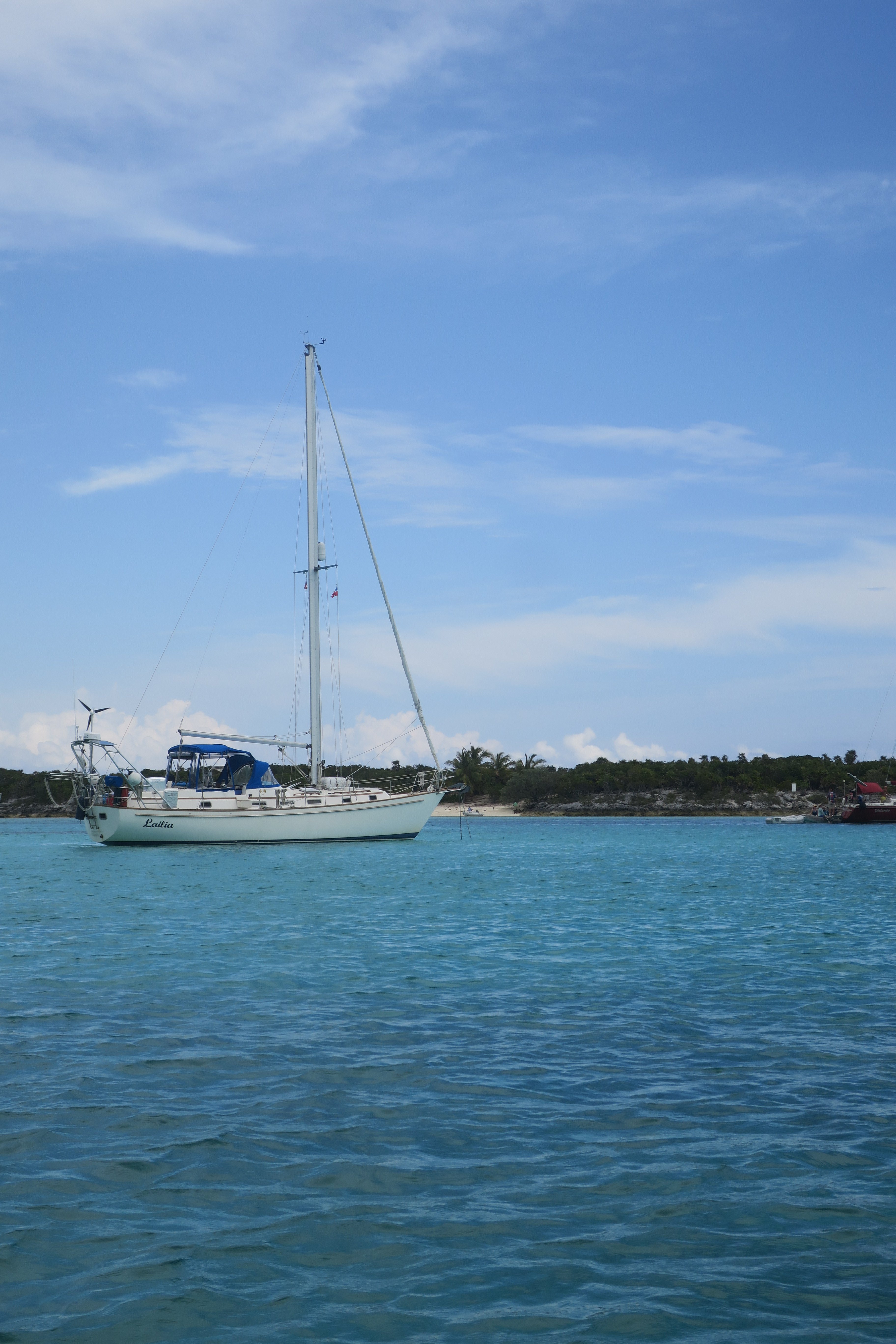 Lailia’s engine also got us to our initial anchor drop and after we set the anchor, it died again. It was a bit close to another boat so once we got the engine started again, we moved to a better spot and dropped anchor again (good thing John fixed the windlass when we were in Nassau).