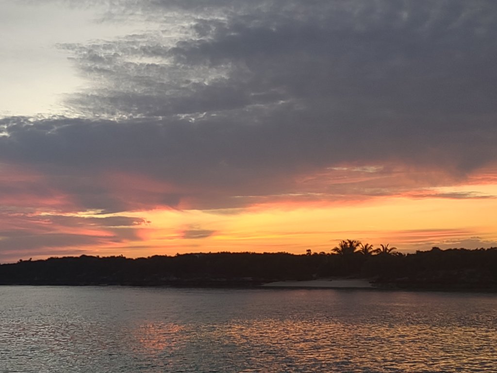 Sunset from the land – our dinghy is tied up hereFrom Lailia tonight