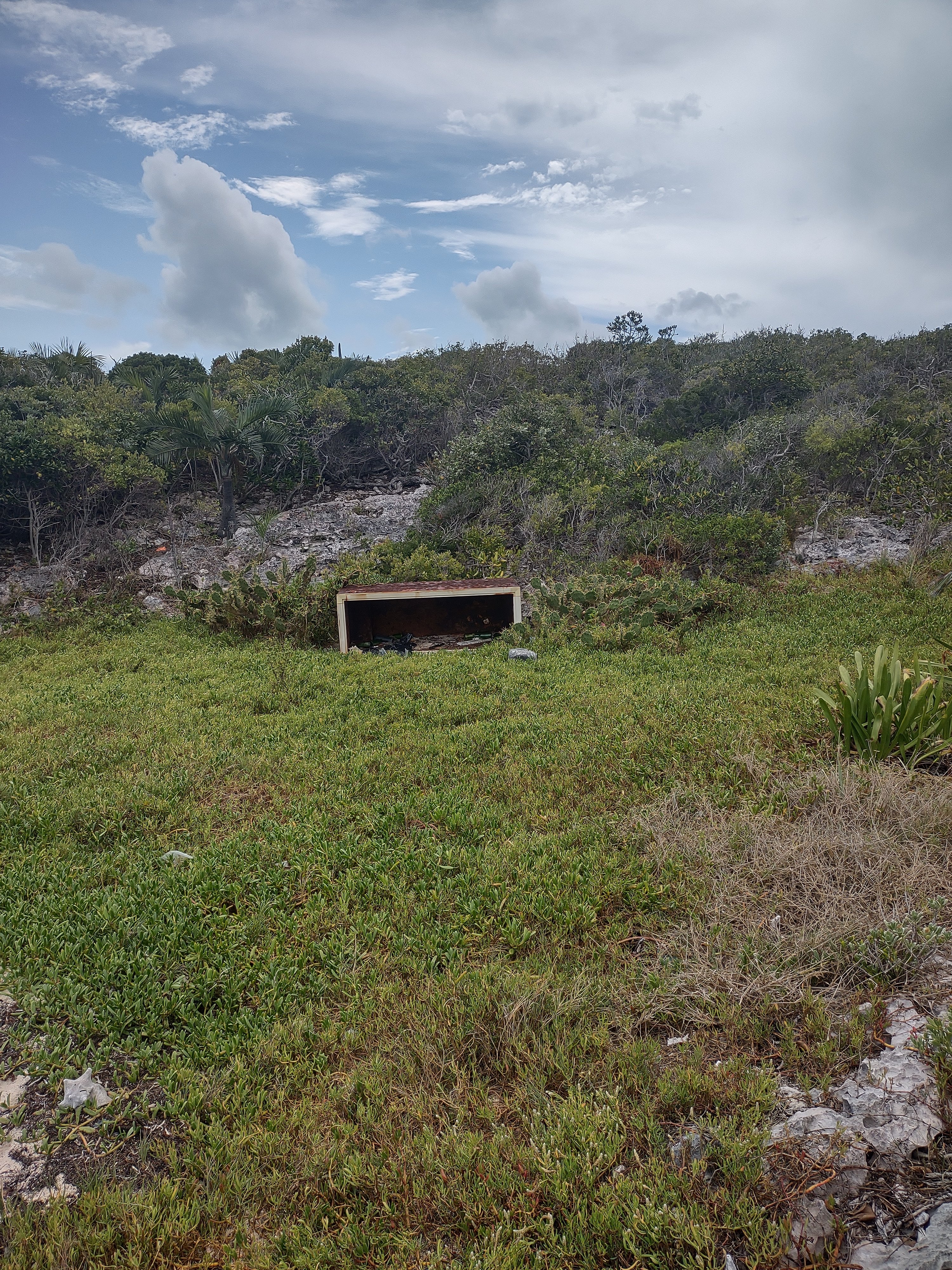 Cool little cayThis is actually the third refrigerator carcass we saw in the Allan Cays areaCay terrain
