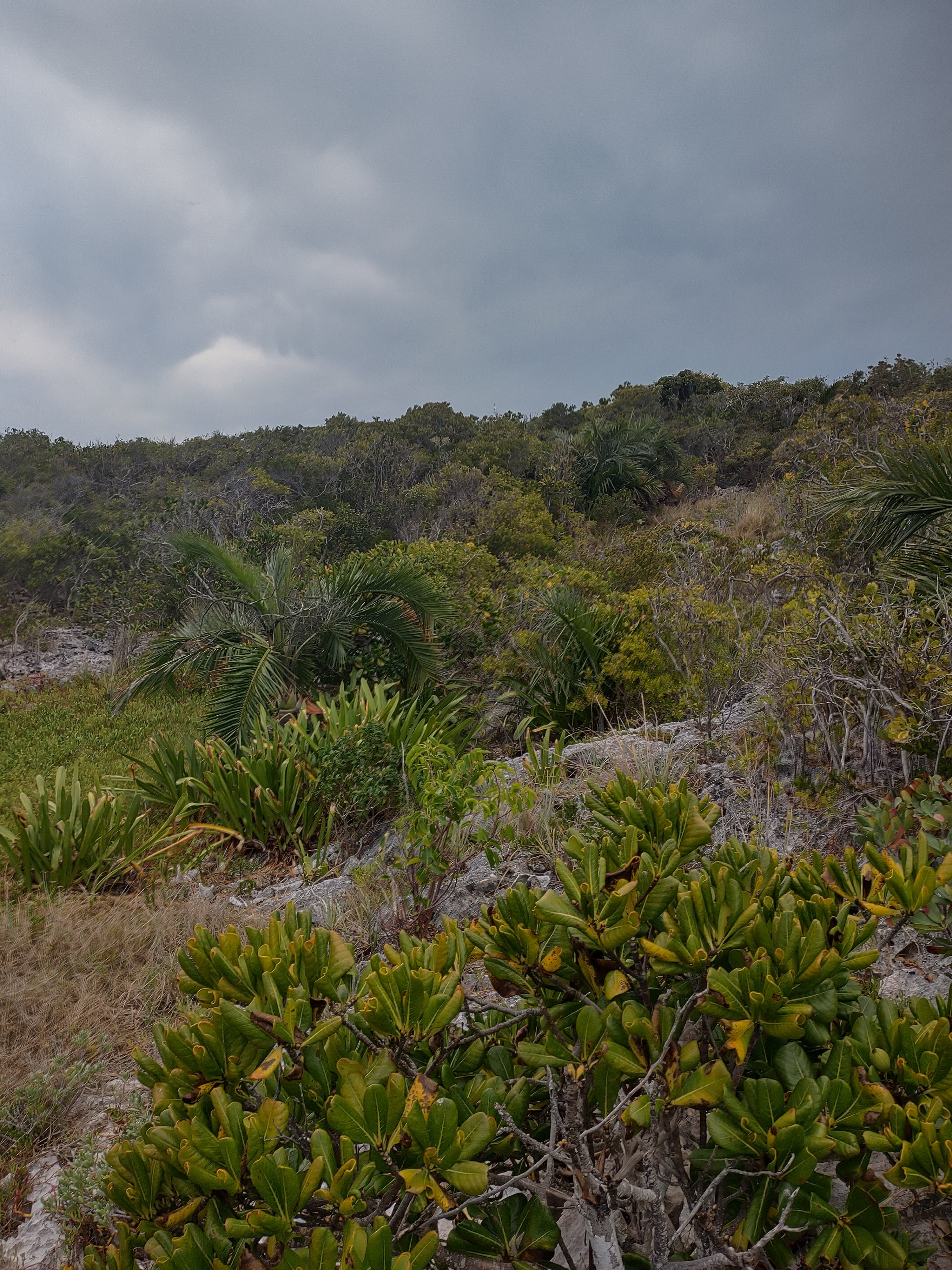 We (I) wanted to see if I could feed more birds on a different cay in this small area. We also wanted to climb to the top of a hill to check out a ruined building, especially since there were concrete pavers leading right up to it.