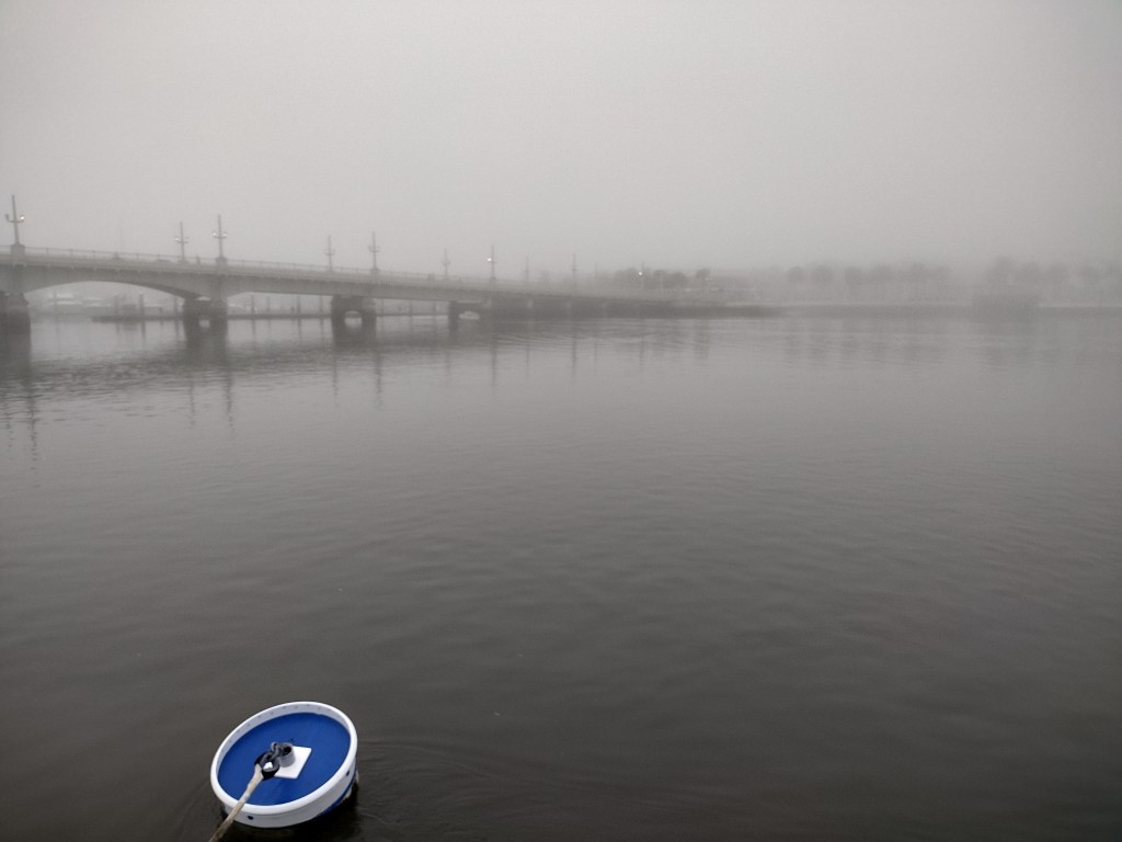 Five hours later, the fog began breaking up enough that we could see the Vilano Bridge. Fifteen minutes after we hauled our anchor we were back in dense fog.