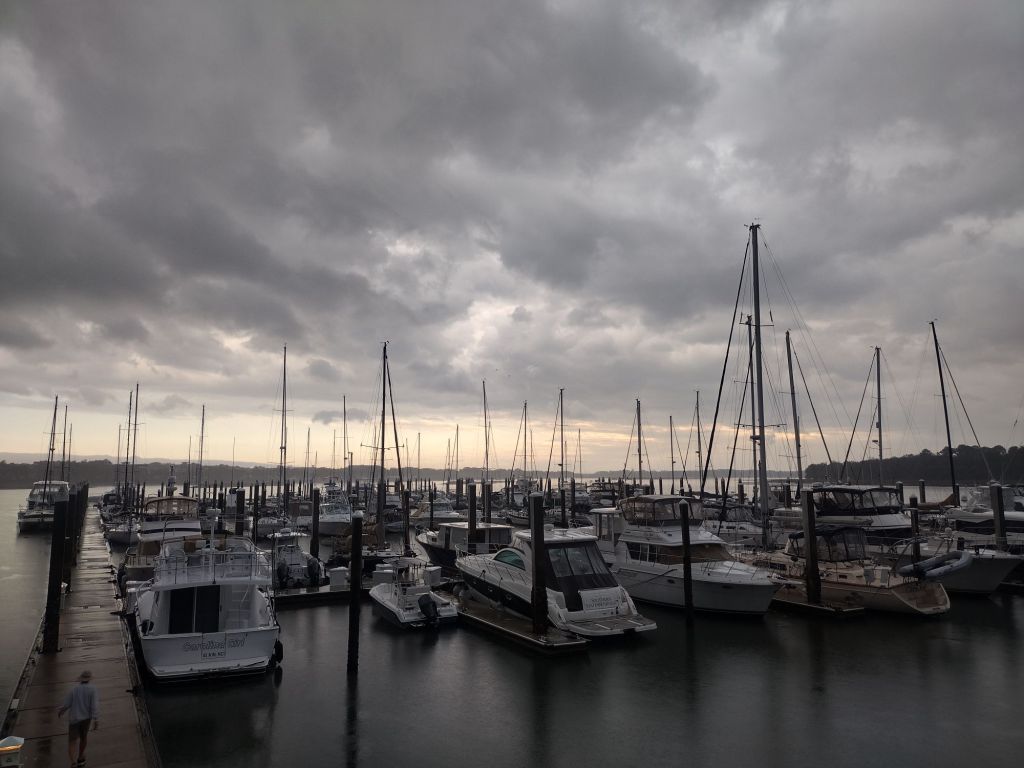 Favorable tides are way more important than avoiding a bit of rain. We moved Lailia back to her slip in a downpour – but it was warm so getting wet was no big deal.
